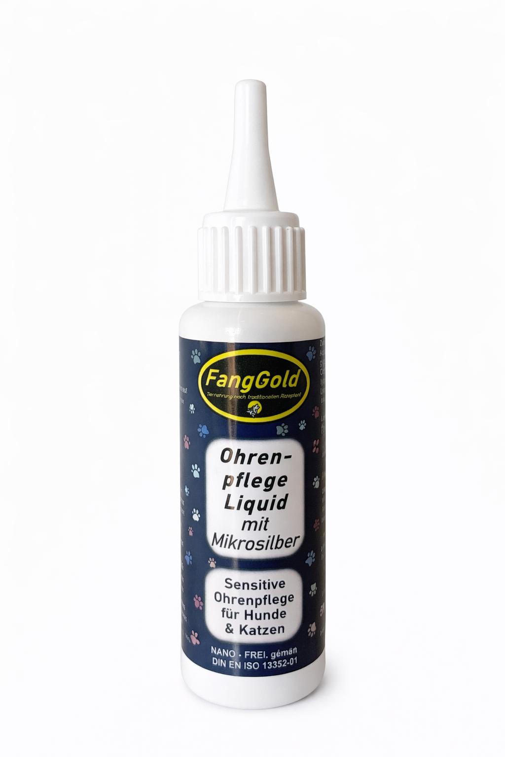 Vor der Anwendung mit Ohrenpflege- Liquid empfehlen wir die Ohren mit „FangGold Ohrenspülung mit Mikrosilber“ zu reinigen, um das Ohr von Verunreinigungen und Verkrustungen zu befreien, damit das Ohrenpflege-Liquid die Ohrenschleimhaut optimal erreichen und somit pflegen und schützen kann.